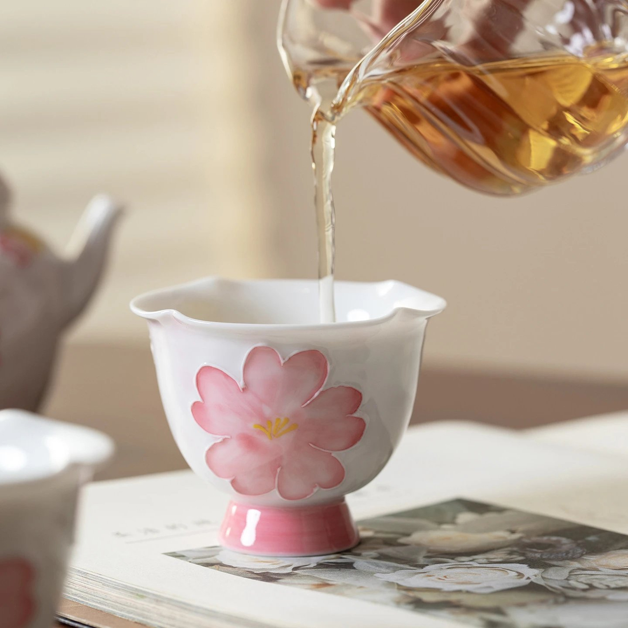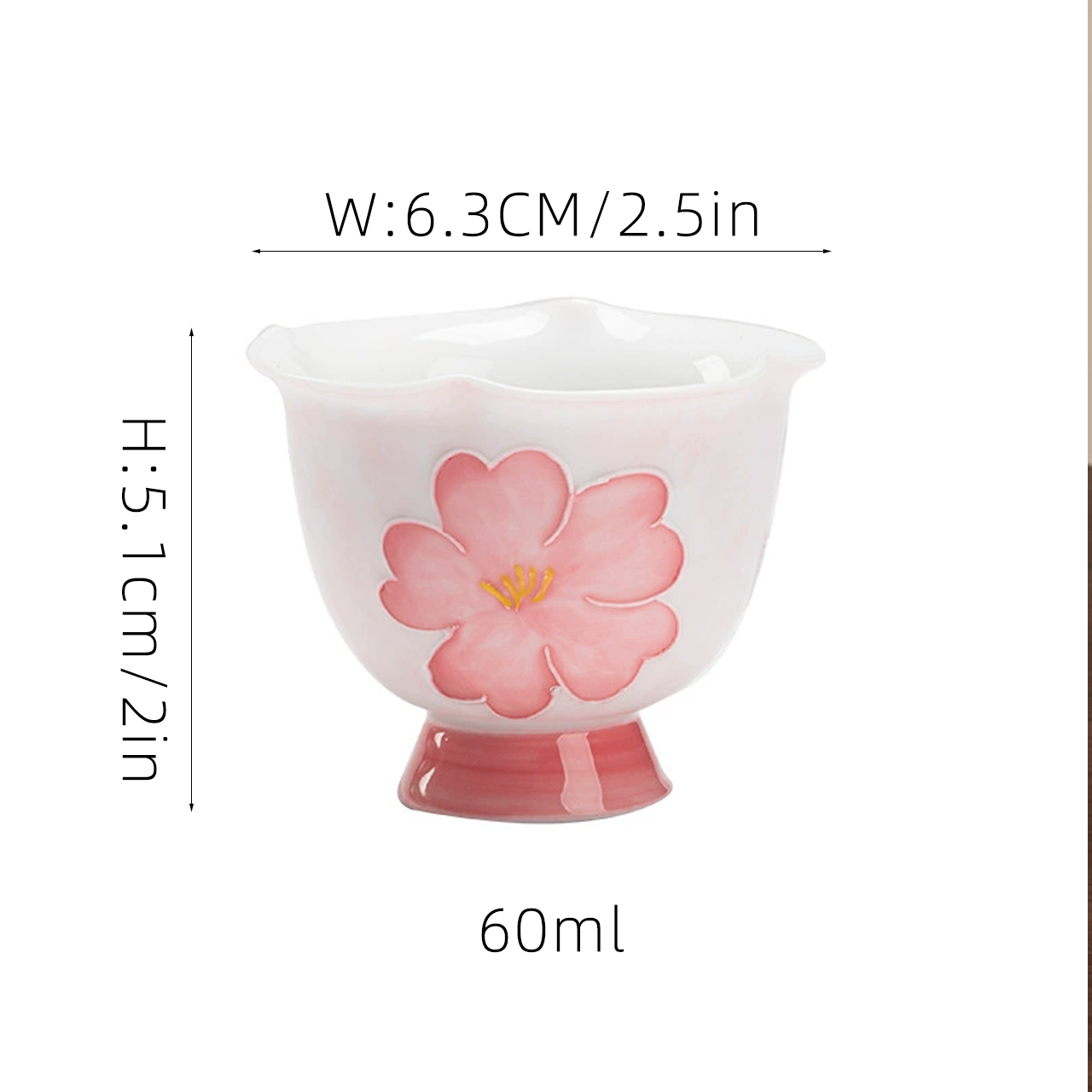 2pcs:Hand-painted Arita-yaki Sakura Pattern Pedestal Personal Tea Cup